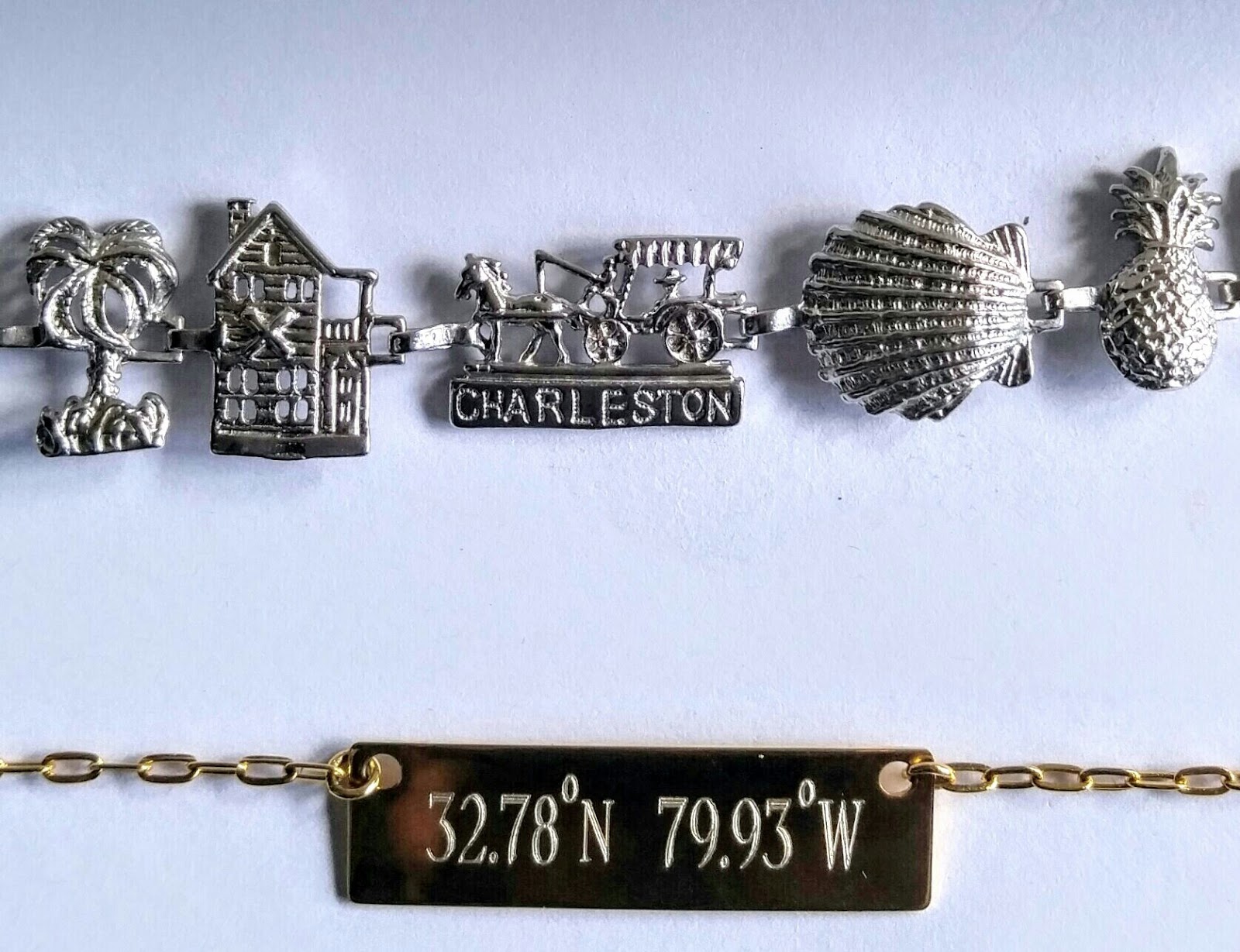 I fell in love with so many pieces, these are some of my favorites. The Austrian Crystal Earrings are so beautiful, you would love them too. The Gold SC state was love at first sight, and when you pair it with the CHS Coordinates necklace, it's perfection, simply because Charleston is home and home is where your heart is. The Compass Rose always gets my mind wandering about where to next. What's not to love about the Charleston Bracelet, it is all around classic and a great piece of jewelry to add to your collection.